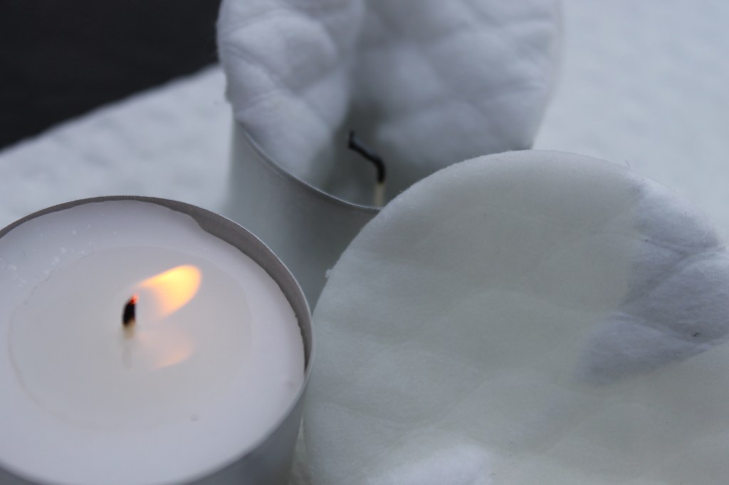 Material: 1 Kerze, (1 Zitrusschäler oder) Messer, 1 Teller, Streichhölzer