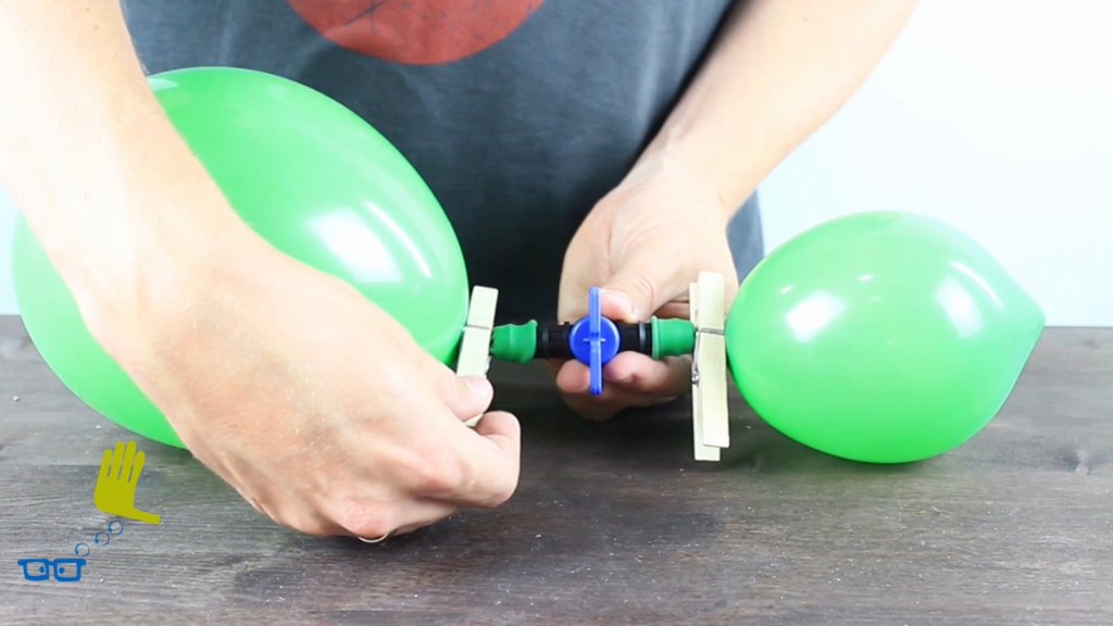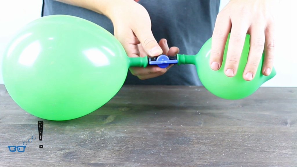 Ein Ventil verbindet zwei Ballons miteinander. Wer wird nun größer?