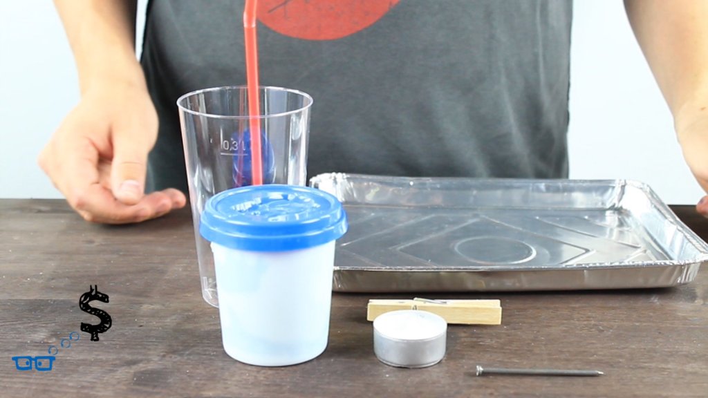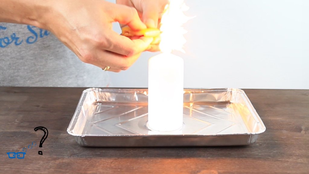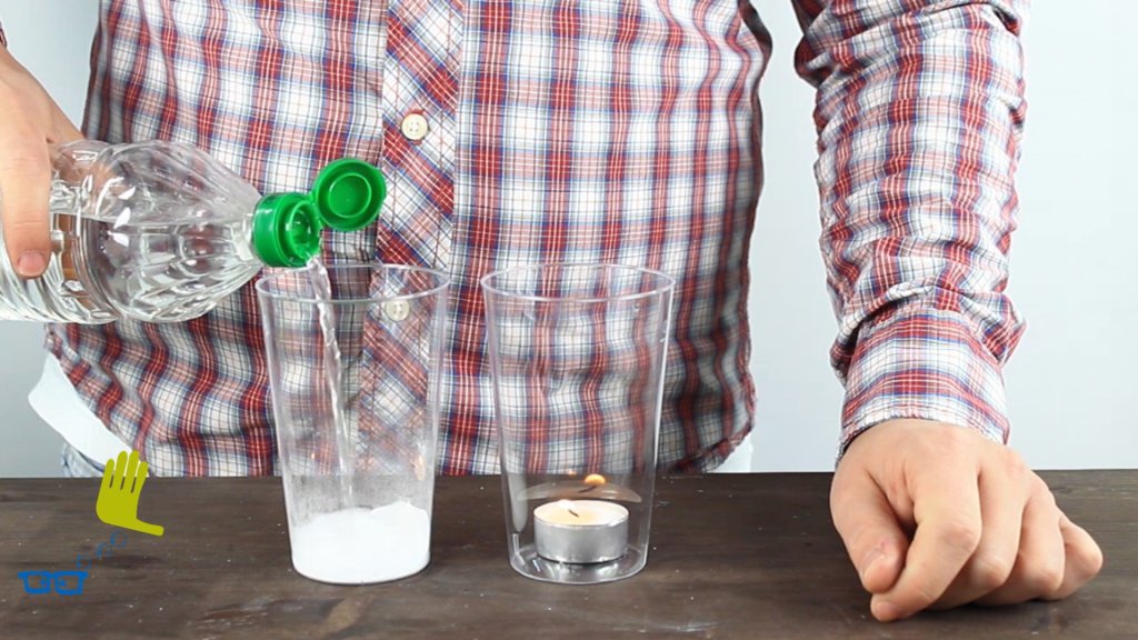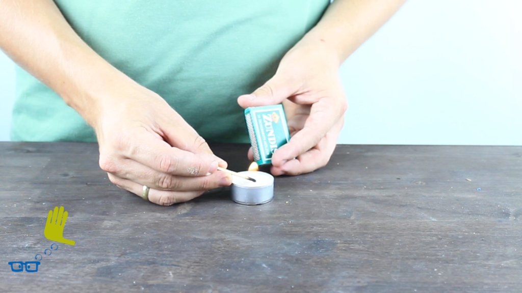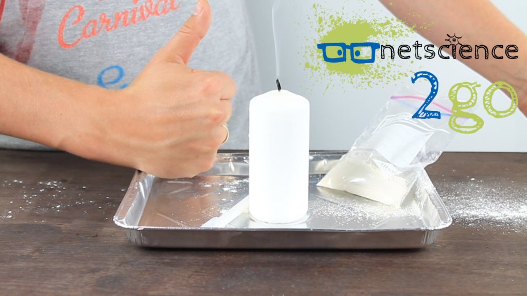 Wir löschen eine Kerzenflamme mit Natron und Essig, mit einem erstaunlichen Ergebnis.
