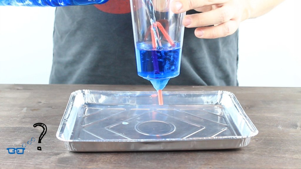 Ein Vulkan aus Speiseöl bricht unter Wasser aus.