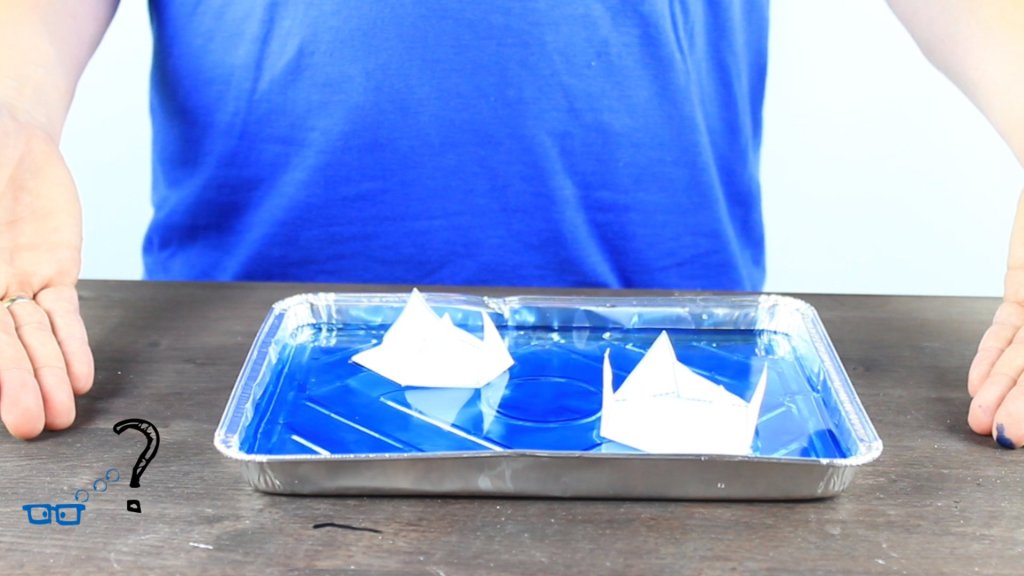 Spiritus treibt ein kleines Papierschiffchen an.