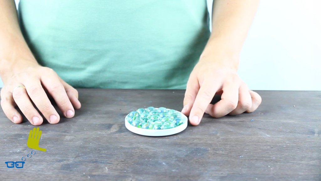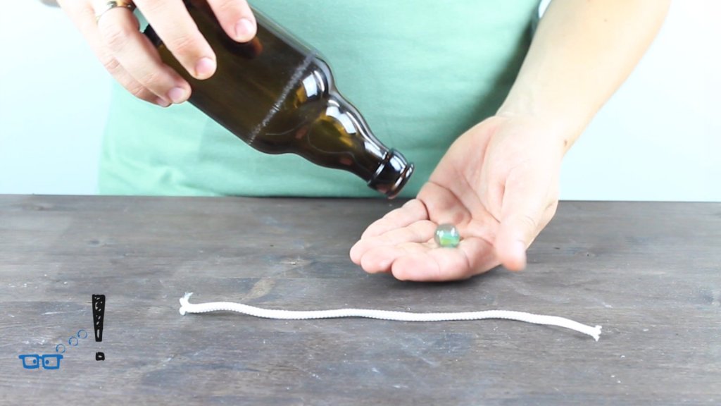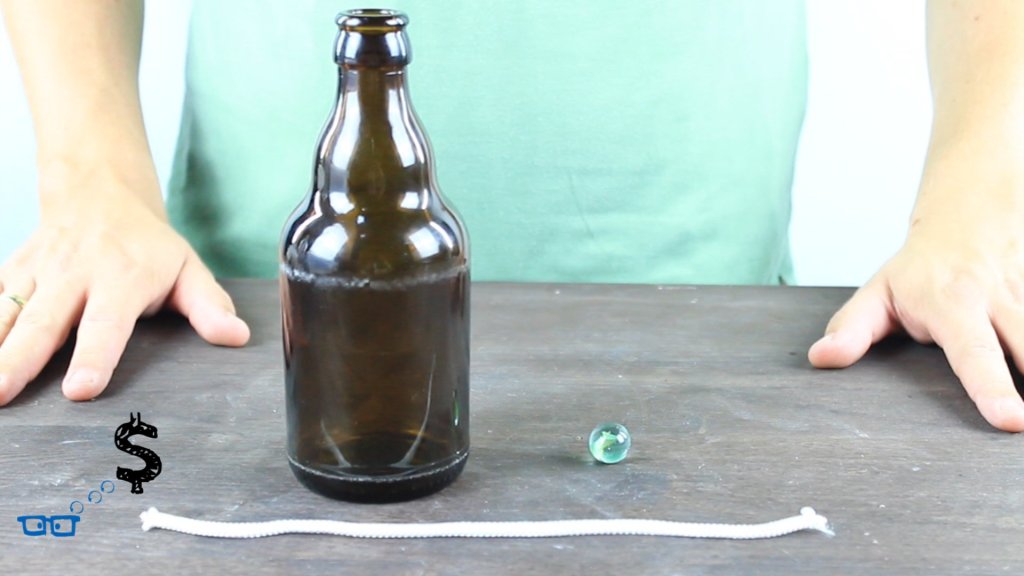 Nur mit einer Murmel und einem Band hält sich die Bierflasche in diesem Zaubertrick.