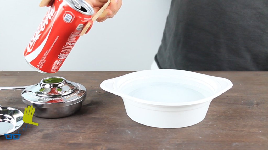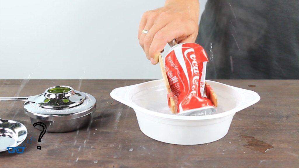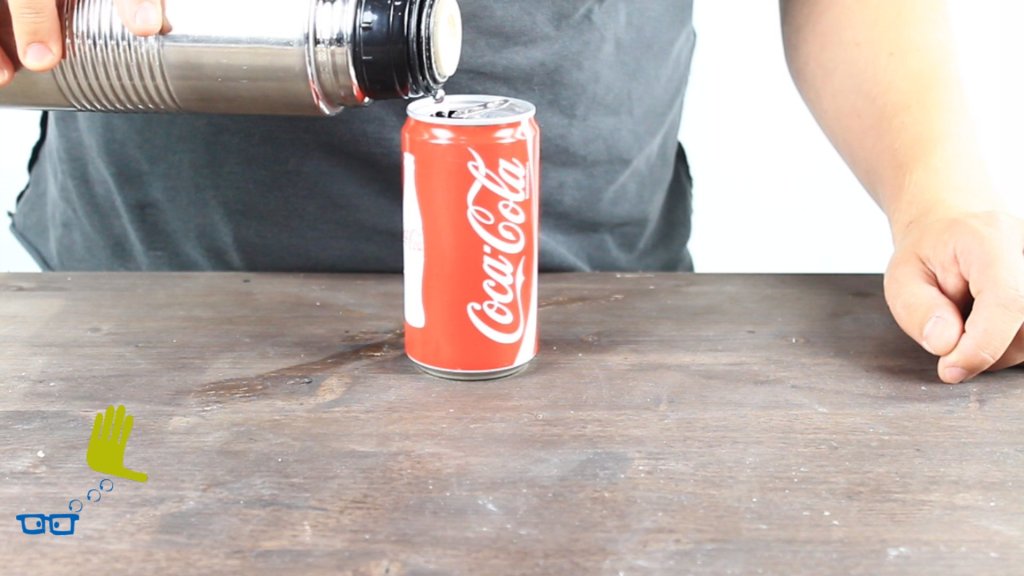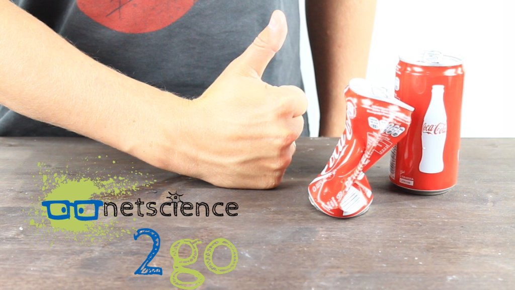 Eine Coladose wird zerdrückt mit Hilfe der Physik.