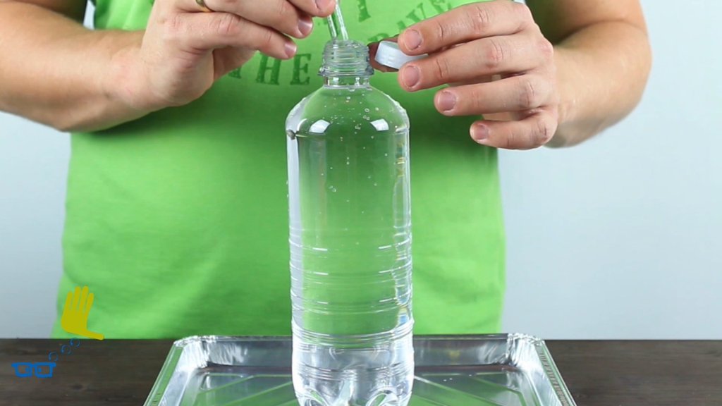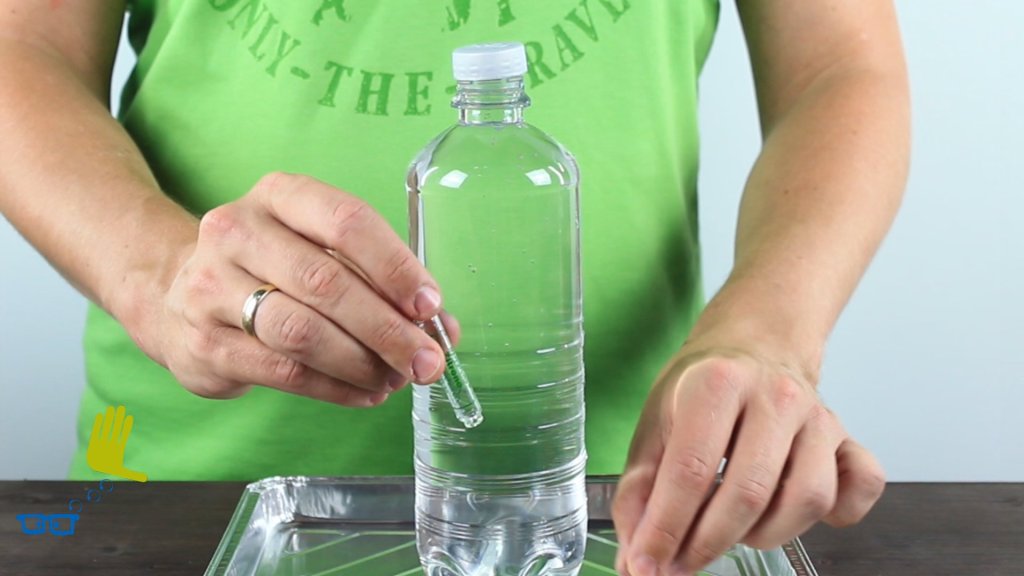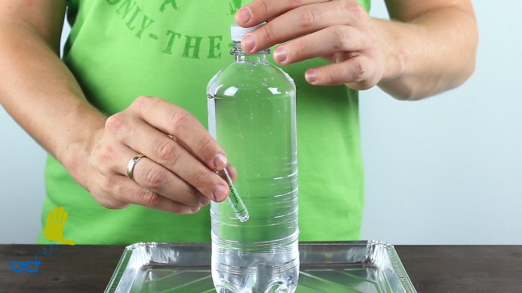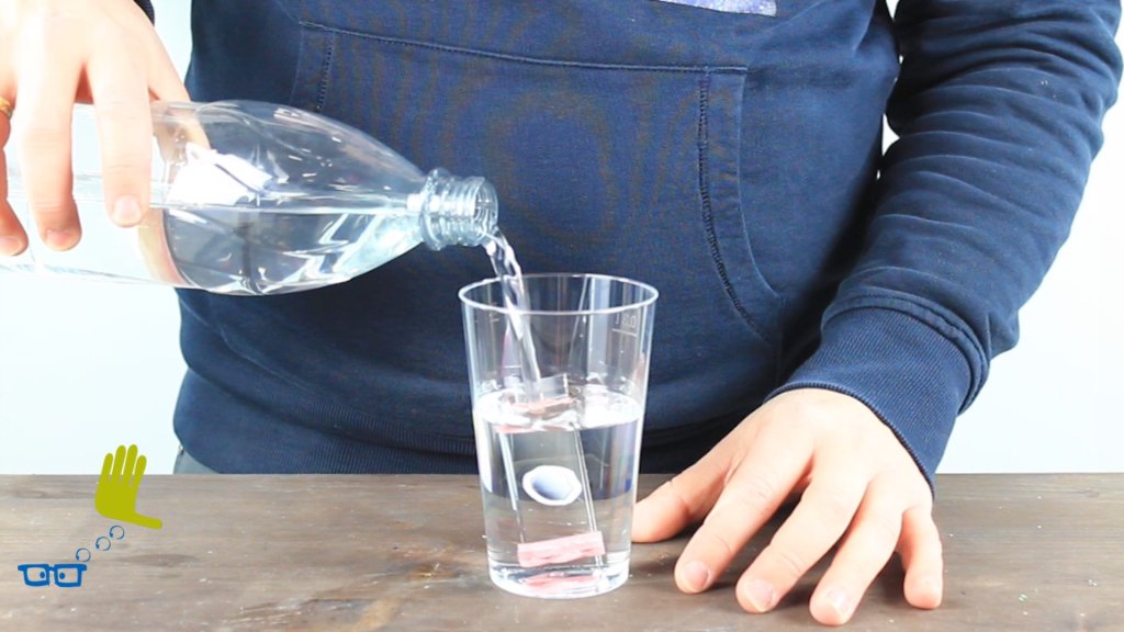 Wasserdruck schickt unsere Tauchglocke auf den Boden der Flasche.