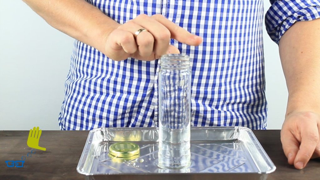 Ein Marmeladenglas wird evakuiert.