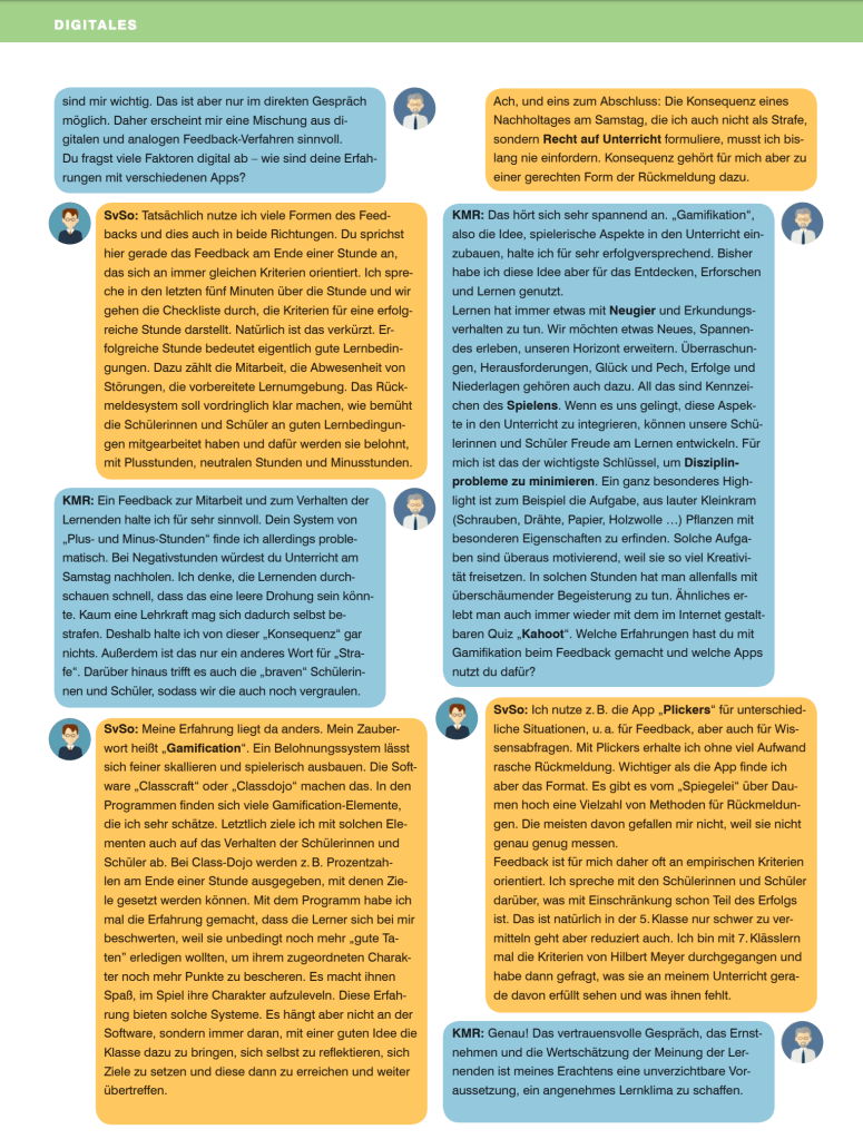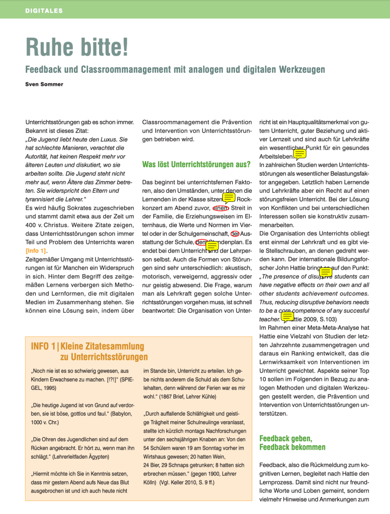 S.Sommer: Ruhe bitte! Feedback und Classroommanagment mit analogen und digitalen Werkzeugen. In K-M. Ricker (Hrsg.) Unterricht Biologie 5-10 im naturwissenschaftlichen Unterricht 3/2019. Seelze: Friedrich Verlag.